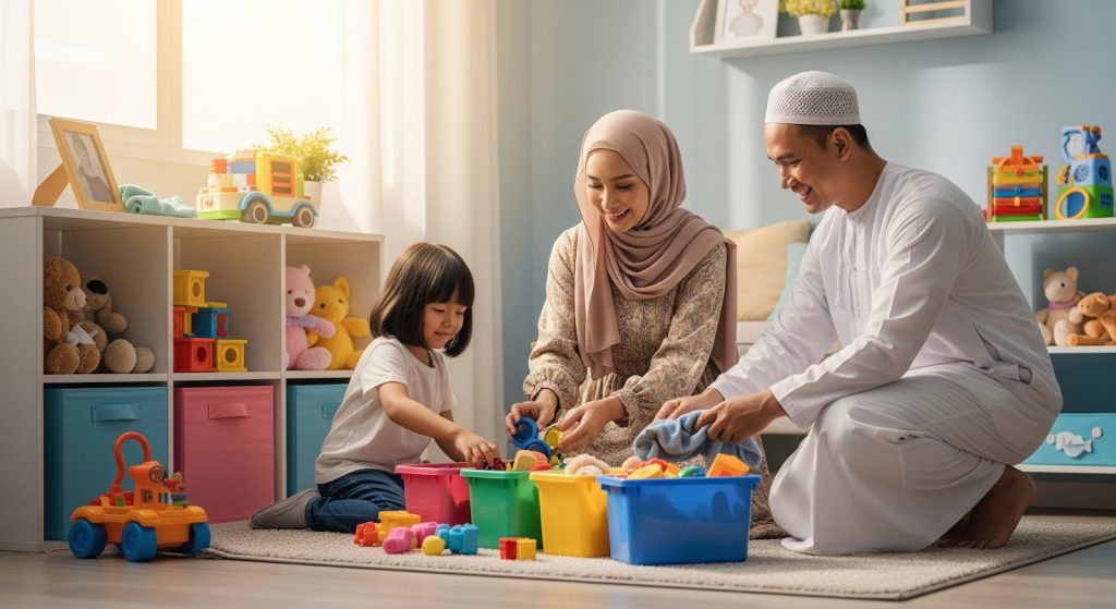 Sambil kemas, ajar anak asingkan barang yang masih elok tapi dah tak guna. Barang ni boleh disedekahkan kepada orang lain. Ia bantu anak untuk belajar tentang memberi, bersyukur dan hidup bersederhana nilai penting dalam Islam.